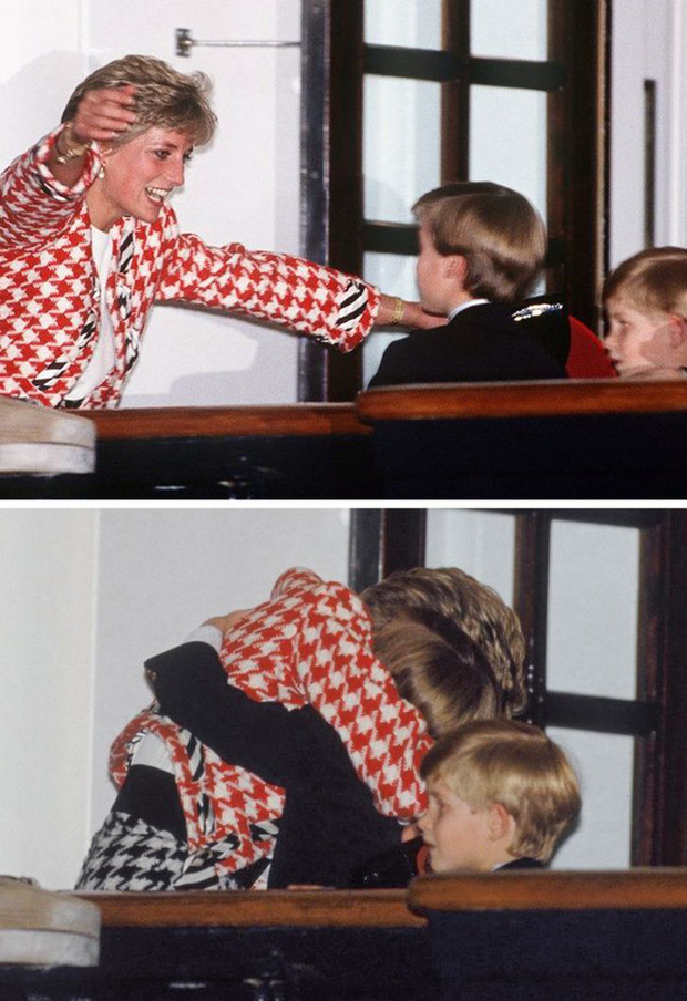Diana dành rất nhiều thời gian bên các con - Hoàng tử William và Harry. Cô thay đổi lịch trình của mình theo con, để có thể tự đưa các con tới trường hoặc mang chúng theo các chuyến công du. Cô cũng không ngần ngại thể hiện tình yêu của mình với con trước công chúng, thông qua những cái ôm nồng nàn.