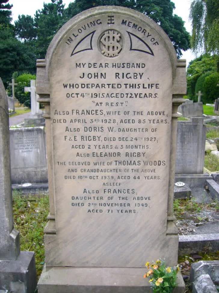 9 năm sau, Paul McCartney đã viết "Eleanor Rigby". Theo dữ liệu, nhạc sĩ đã đặt tên cho nhân vật của mình theo tên nữ diễn viên Eleanor Bron và một cửa hàng ở Bristol có tên Rigby & Evens Ltd. Sau đó, ông nói rằng có lẽ ngôi mộ mà mình chưa từng biết trước đó có liên quan đến tên bài hát của mình, mặc dù không trực tiếp.