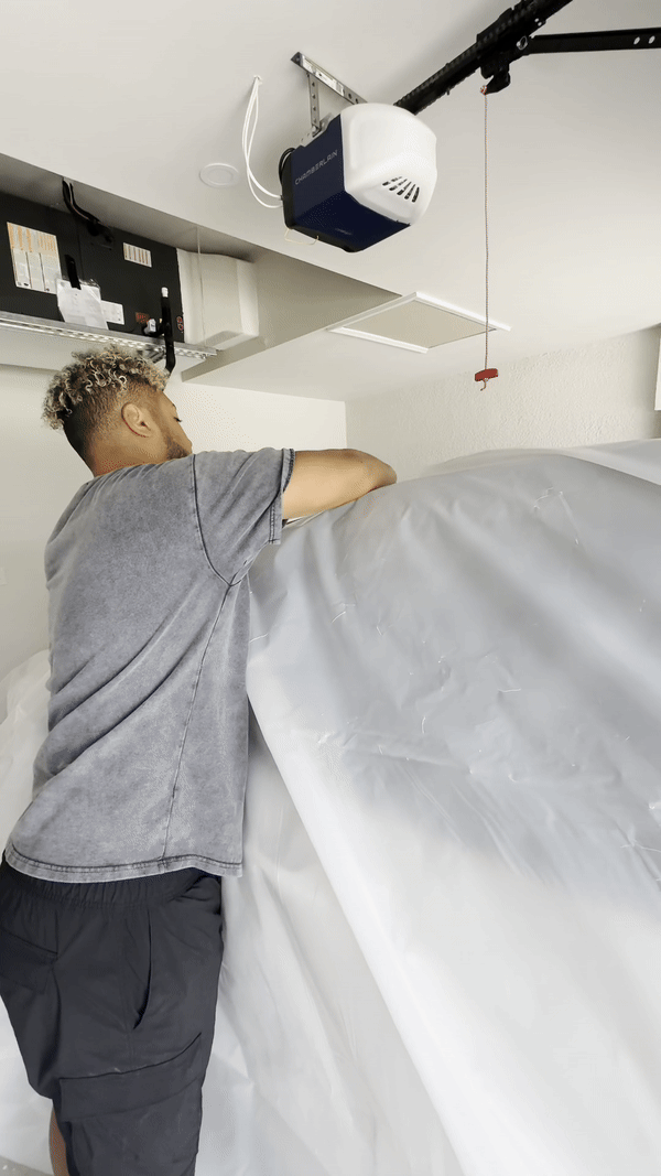 Cụ thể, gia đình này đã làm 2 việc chính là bọc lại ô tô bằng chất liệu không thấm nước rồi cho vào dưới gara. Điều này được cho là để tránh cho nước lũ thấm vào làm hư hỏng các thiết bị bên trong ô tô, đặc biệt trong tình huống xấu nhất khi gara bị ngập trong lũ.