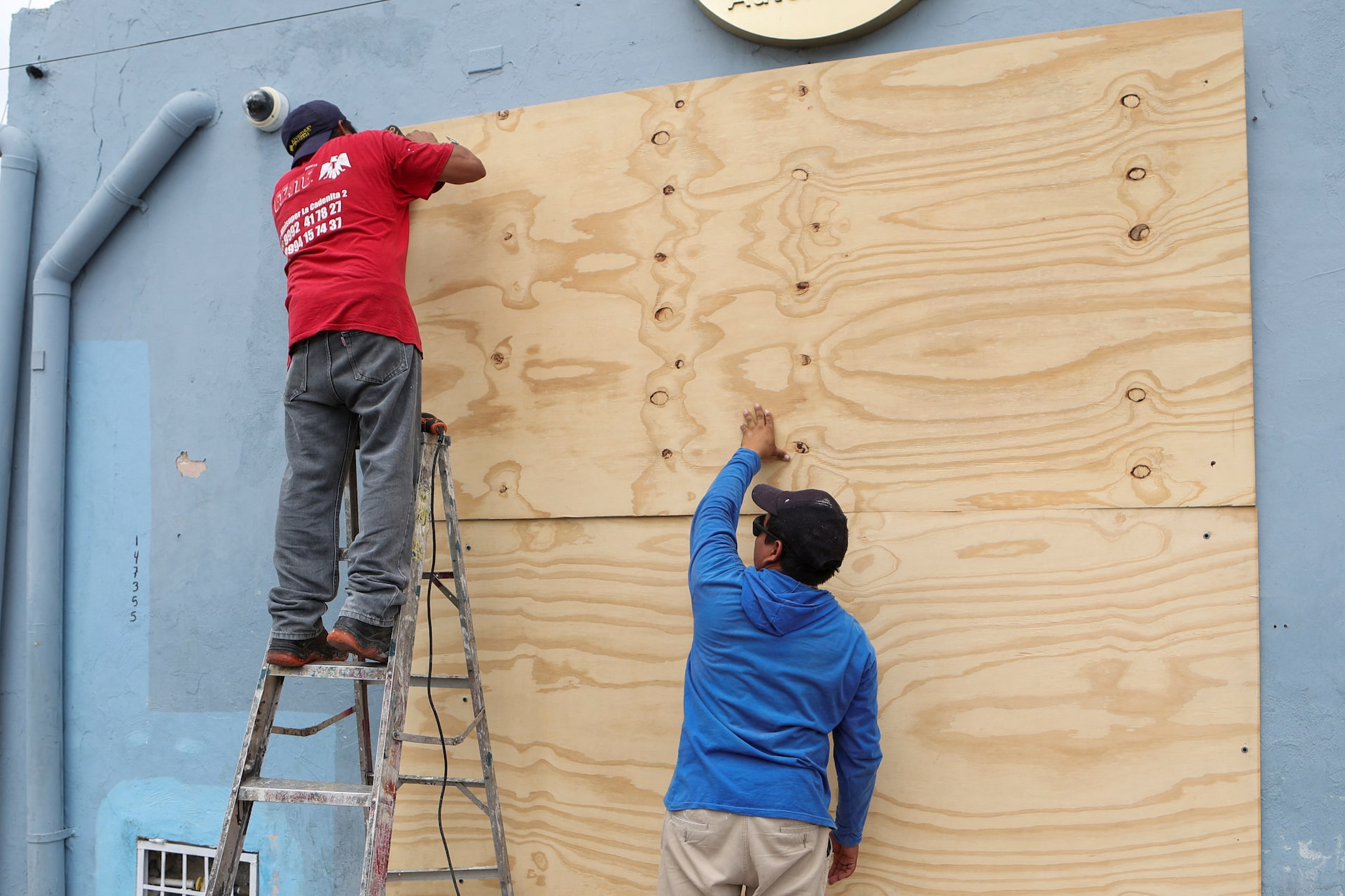 Ngoài ra, gia đình này cũng gia cố lại cửa nhà bằng các việc đóng cố định các mái tôn để tránh cửa sổ bị bay mất trước sức gió. Phương pháp này cũng được nhiều gia đình ở Mỹ chia sẻ để tránh thiệt hại về nhà cửa.
