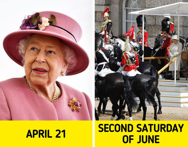 Nữ hoàng Anh Elizabeth II sinh ngày 21/4/1926. Tuy nhiên, toàn Anh Quốc còn tổ chức sinh nhật cho bà vào một ngày nữa, đó là ngày thứ 7 lần 2 của tháng 6 mỗi năm. Nguyên nhân là bởi theo truyền thống Anh Quốc, hoàng tộc phải tổ chức sinh nhật vào mùa hè - thời điểm tiết trời đẹp và ấm áp.