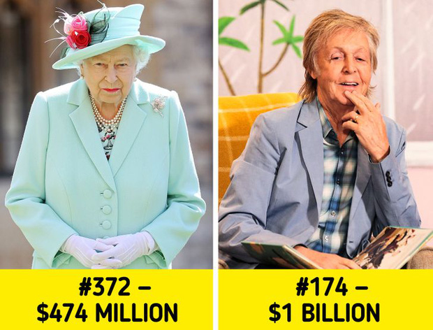 Thời xa xưa, vua chúa là những người nắm cả thiên hạ. Nhưng ngày nay thì không phải vậy, Nữ hoàng Anh thì càng không. Tài sản của bà cách top đầu rất xa, ước tính rơi vào khoảng 350 triệu bảng Anh - đứng thứ 372 trong số những người giàu nhất Anh Quốc.
