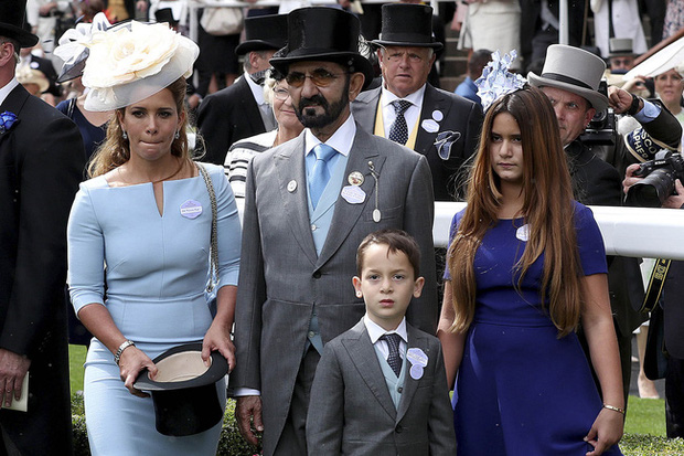 Hình ảnh Quốc vương Sheikh Mohammed bin Rashid Al Maktoum với vợ cũ Công chúa Haya của Jordan, con trai Sheikh Zayed bin Mohammed bin Rashid Al Maktoum và con gái Sheikha Al Jalila bint Mohammad bin Rashid al Maktoum (2 đứa trẻ giờ đã lớn).