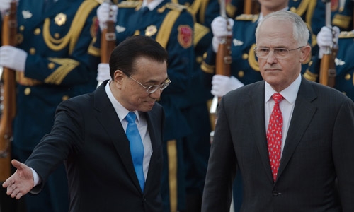Thủ tướng Australia Turnbull (phải) và người đồng cấp Trung Quốc Lý Khắc Cường. Ảnh: HuffingtonPost |