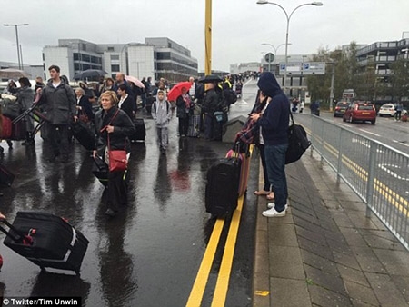 Hành khách sơ tán ở sân bay Gatwick, London, Ảnh sáng 14/11. Ảnh: Twitter Tim Unwin |