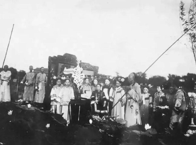 Vì vậy, Từ Hi thái hậu đã chụp rất nhiều ảnh, trong đó có ảnh chụp chung với các phu nhân công sứ, có ảnh bà mặc đồ như Quan Âm Bồ Tát, và còn có một số ảnh chụp tập thể. Ví dụ, bức ảnh dưới đây là ảnh chụp trong đại thọ 70 tuổi của Từ Hi thái hậu. Khi đó, rất nhiều cách cách và phi tần đứng giữa những đóa sen, trông vô cùng kiều diễm, nhưng có một bóng người lại khá lạc lõng, đó là Lý Liên Anh đang cầm sào tre để cố định vị trí cho con thuyền.