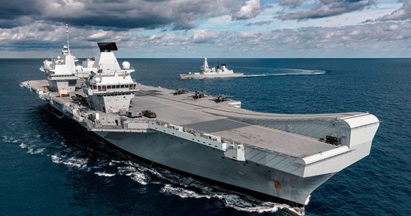 Tàu sân bay HMS Queen Elizabeth vào tuần rồi đã có các cuộc diễn tập huấn luyện ngoài khơi. Tàu này dự kiến đi vào hoạt động trong năm 2021.