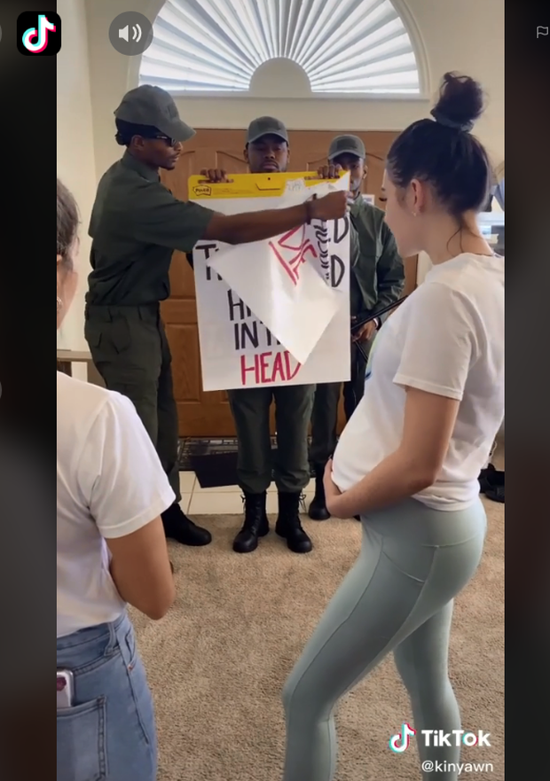 Theo đó, 3 người đồng đội của anh lính trẻ hy sinh đã viết những dòng chữ nhắn nhủ lên những tờ giấy khổ lớn với nội dung: "Chúng tôi đã tận mắt chứng kiến chồng cô ấy hy sinh. Viên đạn đã găm vào đầu anh ấy. Anh ấy bị mất máu quá nhiều và trút hơi thở cuối cùng trên tay chúng tôi. Lời cuối cùng mà anh ấy nói là 'tôi không bao giờ được gặp mặt con gái mình nữa rồi'. Anh ấy nhờ chúng tôi làm một việc nếu có bất kỳ điều gì xảy ra với anh ấy. Vì vậy, chúng tôi phải giữ lời hứa. Đó là lý do chúng tôi có mặt ở đây ngày hôm nay. Để gửi tới cô ấy một món quà cuối cùng. Một món quà từ chồng của cô ấy. Một món quà từ người ở thế giới bên kia...".