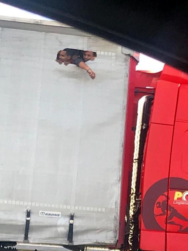Cảnh sát Anh mở cuộc điều tra sau khi trên mạng lan truyền ảnh chụp những người nhập cư đang chen chúc giành chỗ đứng gần lỗ thủng nhỏ trên thùng xe tải ở đường cao tốc đông đúc nhất nước này.