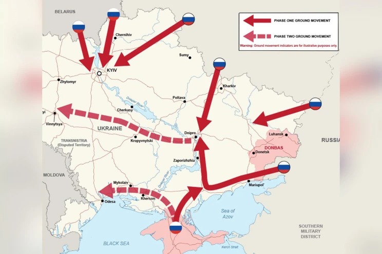 Bộ Quốc phòng Anh ngày 17/2 đã đăng tải một bản đồ và bài thuyết trình trên mạng xã hội về “cuộc tấn công” mà nhà lãnh đạo Nga Putin có thể đang lên kế hoạch khi quân đội nước này tập trung gần biên giới với Ukraine.