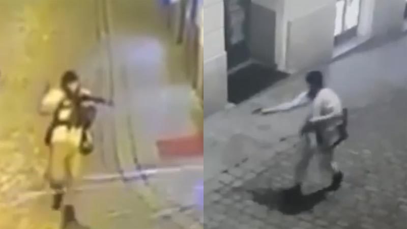 Đối tượng này không rõ danh tính, đi bộ trên con phố lát đá cuội rồi giơ súng bắn một người bên ngoài nhà thờ Stadttempel.