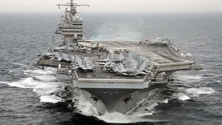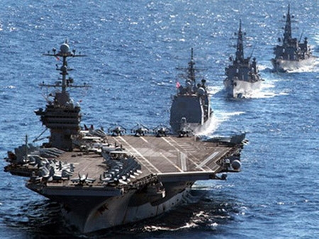 | Đội tàu chiến thuộc Hạm đội 7 của Hải quân Mỹ do tàu sân bay USS George Washington dẫn đầu - Ảnh: Hải quân Mỹ |
