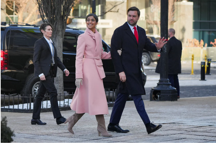 Trong khi đó, Đệ nhị phu nhân Usha Vance tuân theo các quy tắc cũ. Bà Vance không có nhà tạo mẫu chính thức dù bà nhận được sự giúp đỡ từ một người bạn làm việc cho một thương hiệu thời trang. Bà thậm chí còn mua trang phục, gồm áo khoác và váy mà bà mặc đến buổi lễ ở Arlington, trên nền tảng mua sắm trực tuyến.