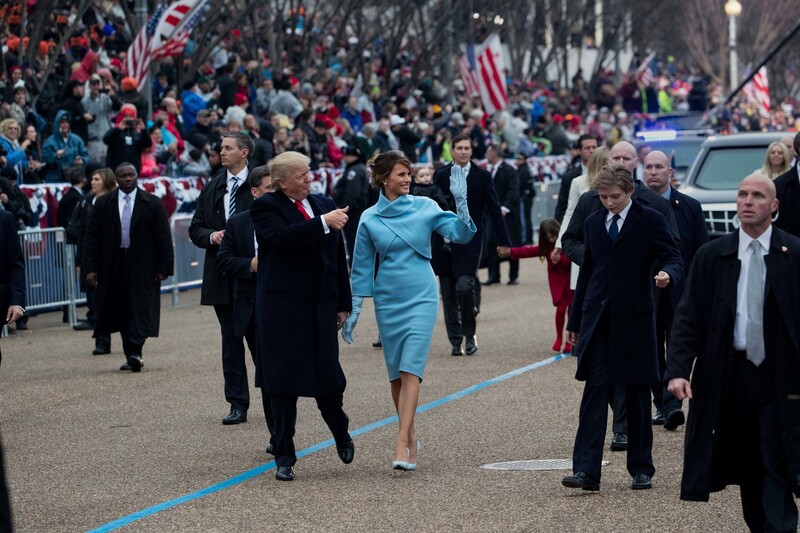 Năm 1961, John F. Kennedy gây ấn tượng khi bỏ mũ trong lúc phát biểu nhậm chức. Lần này, phu nhân Melania Trump gây ấn tượng bằng cách giữ nguyên mũ, khi chồng bà - Tổng thống Donald Trump phát biểu nhậm chức.