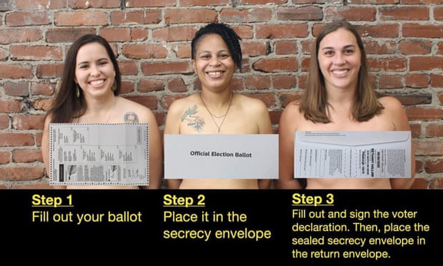 Nếu cử tri quên không đặt phiếu bầu trong “phong bì bí mật”, cơ quan bầu cử sẽ xếp các lá phiếu làm không đúng quy định là “lá phiếu trần trụi” và không đếm chúng. Chính vì vậy, 3 nữ chính trị gia muốn dùng hình ảnh về sự khỏa thân của chính họ để thu hút cử tri quan tâm tới mối đe dọa về việc lá phiếu của họ không được tính nếu gửi sai quy định.