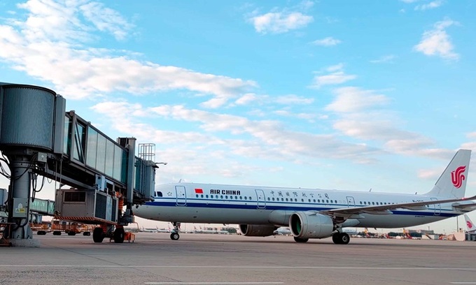 Hình ảnh từ đài truyền hình CCTV cho thấy một máy bay của hãng hàng không quốc gia Trung Quốc Air China đang lăn bánh tại Sân bay Quốc tế Thủ đô Bắc Kinh hôm nay, sau khi kết thúc hành trình từ thủ đô Phnom Penh của Campuchia. Đây là chuyến bay quốc tế đầu tiên đến Bắc Kinh sau khi Cục Hàng không Dân dụng Trung Quốc (CAAC) thông báo nối lại dần các chuyến bay quốc tế thẳng đến thủ đô.