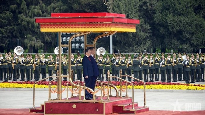 Tiếp nối những phút giây thiêng liêng của lễ chào cờ và loạt đại bác chào mừng, Tổng Bí thư, Chủ tịch Trung Quốc Tập Cận Bình cùng Tổng Bí thư, Chủ tịch nước Tô Lâm đã sải bước duyệt Đội Danh dự Quân giải phóng Nhân dân Trung Quốc, đánh dấu sự hoàn tất của một lễ đón hoàn mỹ, uy nghiêm.