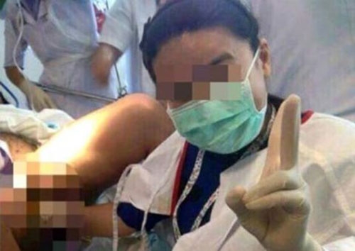 Bức ảnh bác sĩ “tự sướng” lúc đỡ đẻ đang gây sóng gió trên cộng đồng mạng Malaysia (Nguồn: Asia One) |