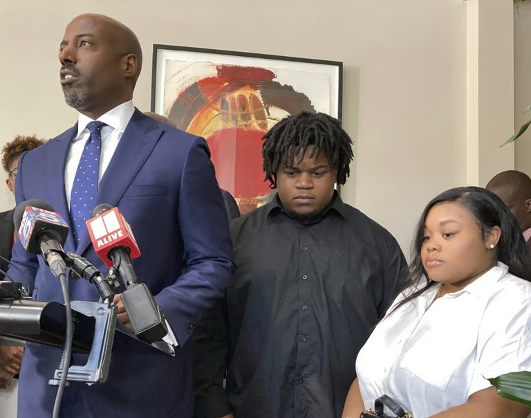 Cha và mẹ của trẻ, Jessica Ross và Treveon Isaiah Taylor Sr., tham gia họp báo ở thành phố Atlanta, nơi luật sư công bố đơn kiện chống lại bác sĩ Tracey St. Julian và Trung tâm Y tế Khu vực phía Nam, một bệnh viện ở bang Georgia (Mỹ).
