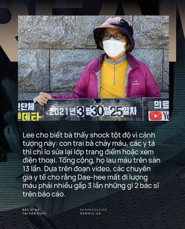 "Tôi nghĩ tên bác sĩ ma đã không kiểm tra lượng máu chảy ra từ con tôi" - Lee phẫn nộ. "Tôi thực sự rất tức giận. Phải như có ai đó kiểm tra lượng máu con tôi mất đi, nhưng chẳng ai làm cả."