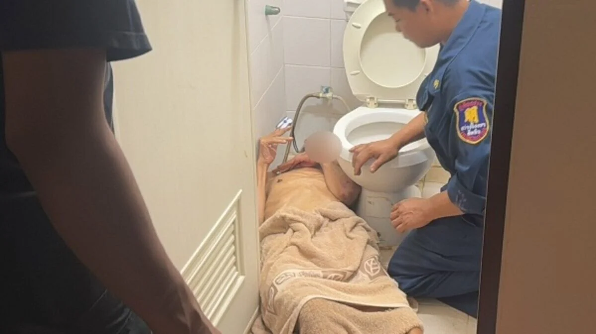 Chính vì thế, người bạn quyết định đến thăm nhà và gọi lớn nhưng chỉ nghe thấy tiếng trả lời yếu ớt từ tầng trên. Sau đó, anh này đã vào nhà qua lối cửa sổ và tìm thấy ông Pornchai, 72 tuổi trên sàn phòng tắm nên ngay lập tức liên hệ với dịch vụ cứu hộ để được giúp đỡ.