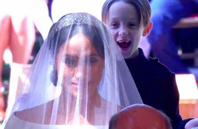 Trong ảnh, cậu bé Brian, một trong ba con của Jessica, cười thích thú khi đứng phía sau nâng khăn voan cưới cho Meghan. Tuy nhiên, hiện bức ảnh này đã bị cô xóa đi.