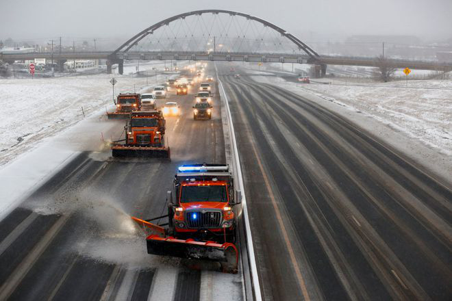 Các nhà dự báo thời tiết cho biết, dông bão và mưa đá đang hoành hành ở miền Nam bang Nevada. Trong khi đó, tình trạng tuyết rơi dày đang diễn ra ở bang Arizona. Tại bang Texas, thời tiết lạnh giá ở phía Bắc đang xâm nhập vào vùng không khí ấm hơn tại miền Nam, khả năng gây ra lốc xoáy. Gió mạnh có thể đạt tốc độ lên tới trên 110km/h.