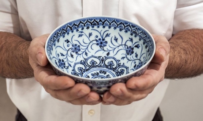 Chiếc bát nhỏ màu trắng được trang trí họa tiết hoa lá màu xanh dương nằm trong số nhiều tác phẩm nghệ thuật Trung Quốc được Sotheby's, một trong những công ty môi giới lớn nhất thế giới về mỹ thuật trang trí, đồ trang sức, bất động sản và đồ sưu tầm, bán hôm 17/3 trong khuôn khổ các sự kiện Tuần lễ châu Á. Tên của người bán và người mua không được tiết lộ.