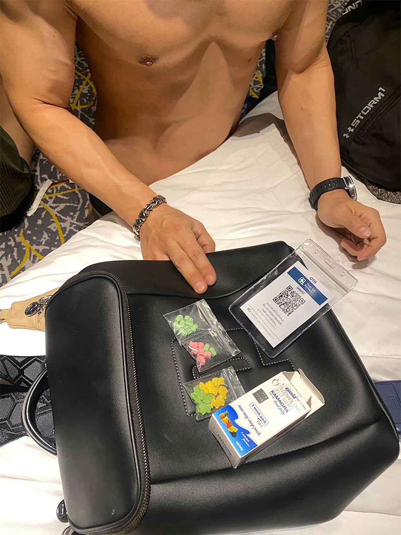 Tại hiện trường, cảnh sát phát hiện hàng trăm nam giới người Thái và nước ngoài, tất cả đều mặc đồ lót giống nhau. Lực lượng chức năng thu giữ một lượng lớn ma túy loại 1 (Ecstasy) và chất gây nghiện loại 2 (Ketamine). Toàn bộ người tham dự đã bị đưa về đồn cảnh sát Thonglor.