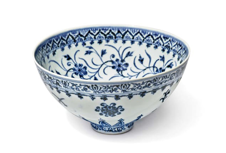 Chiếc bát sứ nhỏ màu trắng, trang trí họa tiết tinh xảo hình hoa sen, hoa mẫu đơn, hoa cúc và hoa lựu, đường kính khoảng 15 cm. Sau khi kiểm tra kỹ lưỡng, các chuyên gia xác định chiếc bát do triều đình nhà Minh sản xuất dưới thời Hoàng đế Vĩnh Lạc (1403-1424).