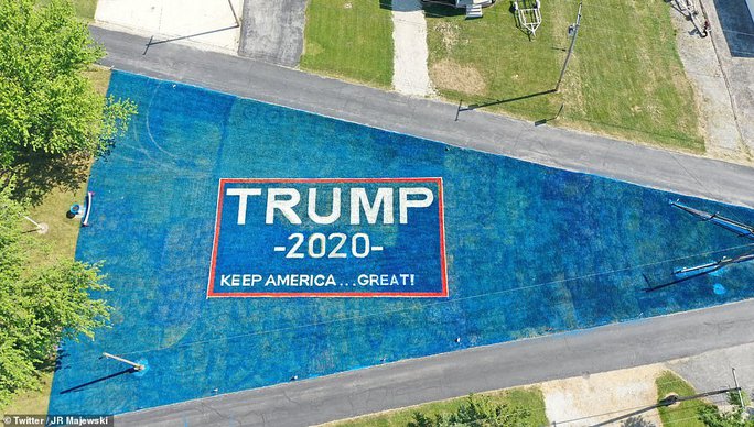 J.R. Majewski - cựu chiến binh thuộc Không lực Mỹ - cũng là ứng cử viên Hạ viện được ông Trump hậu thuẫn. Ông thể hiện sự ủng hộ ông Trump bằng cách biến toàn bộ thảm cỏ nhà mình thành tấm banner ủng hộ ông Trump rộng 19.000 m vuông.