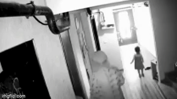 Cuối cùng, cả xe cả người bị mắc kẹt ngay trên trần trong khi bà mẹ điên cuồng gào thét, hốt hoảng với theo để kéo con xuống. Tuy nhiên, dù đã dù cố hết sức nhưng vẫn vô dụng, cô hớt hải chạy đến đập cửa căn phòng ngay cạnh đó cầu cứu.