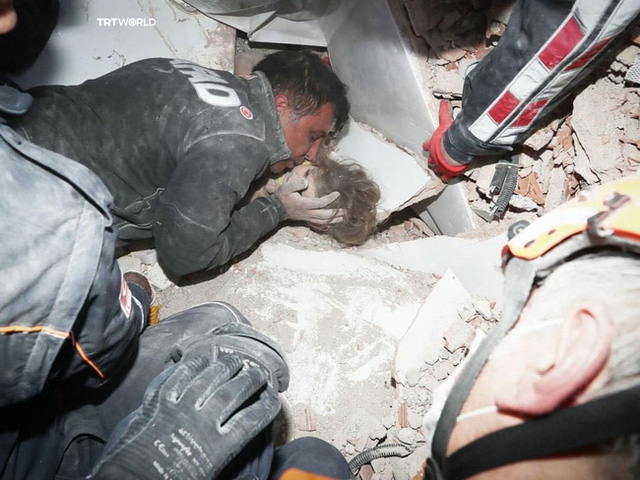 Anh Uğur Gezgin, cha đứa trẻ đã không kìm được nước mắt khi thấy con gái mình vẫn còn sống sau vụ động đất kinh hoàng. Vừa nhìn thấy cô con gái, người cha đã lao đến hôn lên gương mặt phủ đầy bụi của con gái khi cô bé vẫn còn mắc kẹt giữa đống đổ nát. Khoảnh khắc xúc động và ấn tượng ấy đã được chia sẻ nhanh chóng thu hút sự đồng cảm của cư dân mạng xã hội.