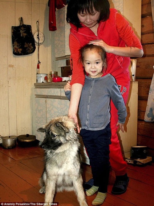 | Mẹ con cô bé Karina cùng chú chó Naida. Ảnh: Siberian Times |