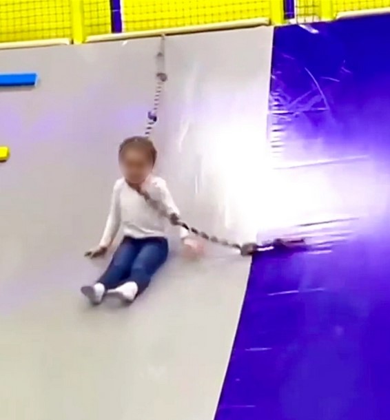Đoạn video bắt đầu bằng cảnh một đứa trẻ khác tháo dây ở bức tường bên cạnh, đúng lúc bé gái tên là Knesia bước lên cầu trượt để trượt xuống.
