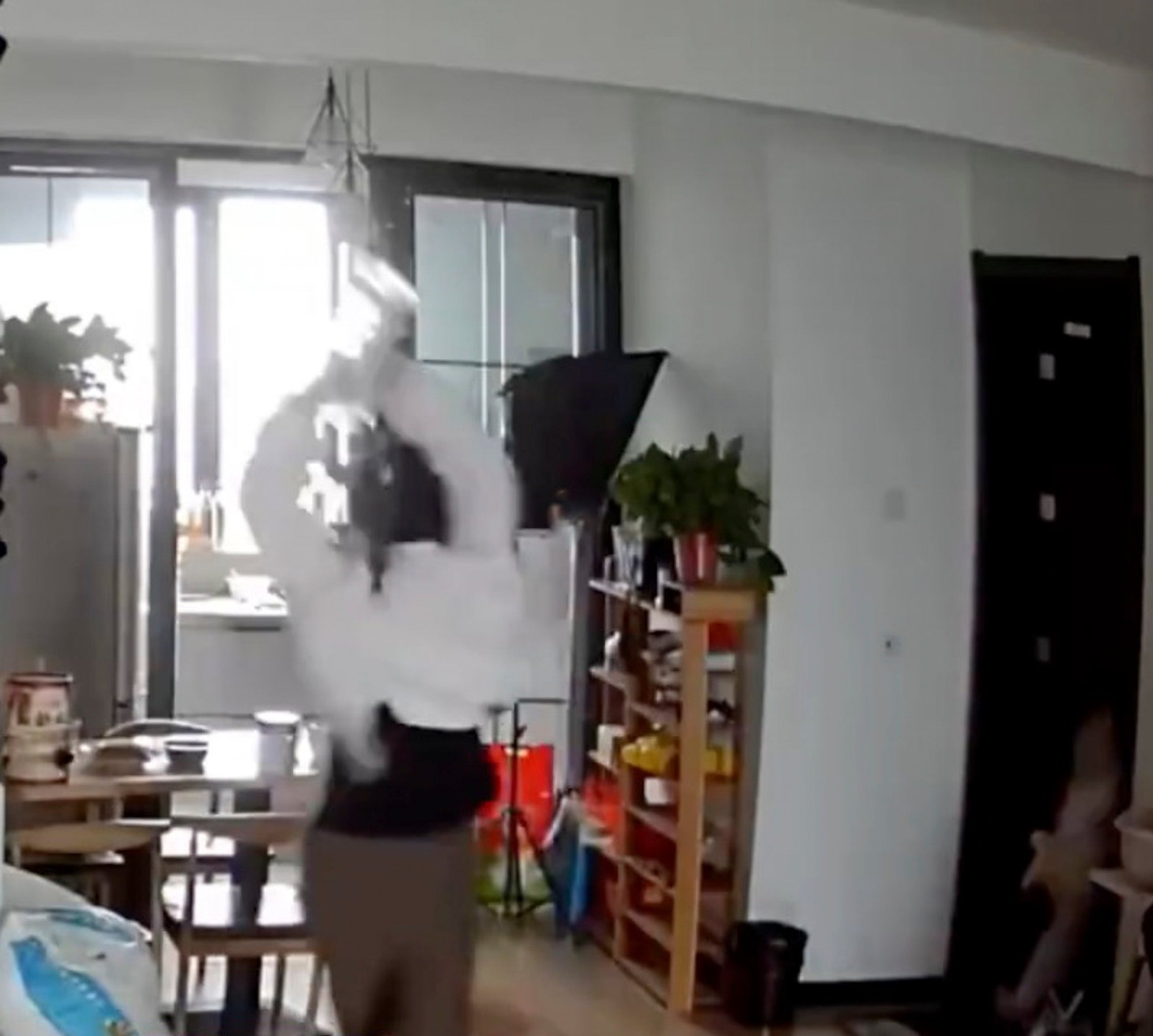 Từ đoạn phim do camera giám sát ghi lại có thể thấy người mẹ đã đập vỡ một chiếc bình thành nhiều mảnh. Người chồng ngay sau đó đã lật tung chiếc bàn xuống đất, xô ngã vợ rồi nhảy vào đánh cô tới tấp.