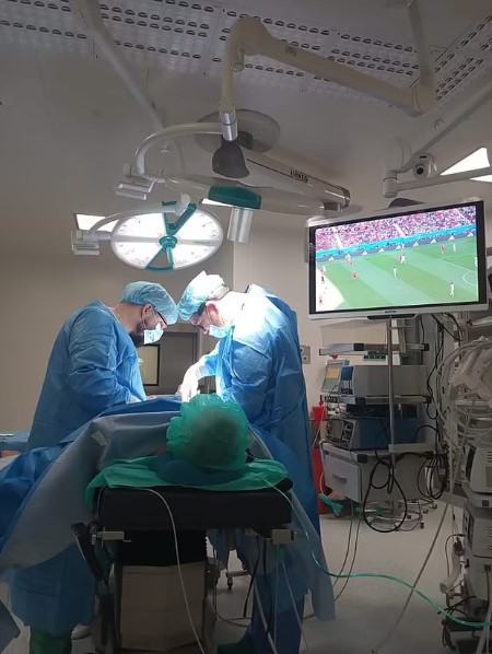 Các bác sĩ chấp nhận yêu cầu này, chuyển tới một chiếc TV màn hình phẳng khá lớn, đặt ở góc phòng mổ. Sau khi tiến hành gây mê, các bác sĩ phẫu thuật bình thường, trong khi bệnh nhân vẫn có thể theo dõi trận đấu.