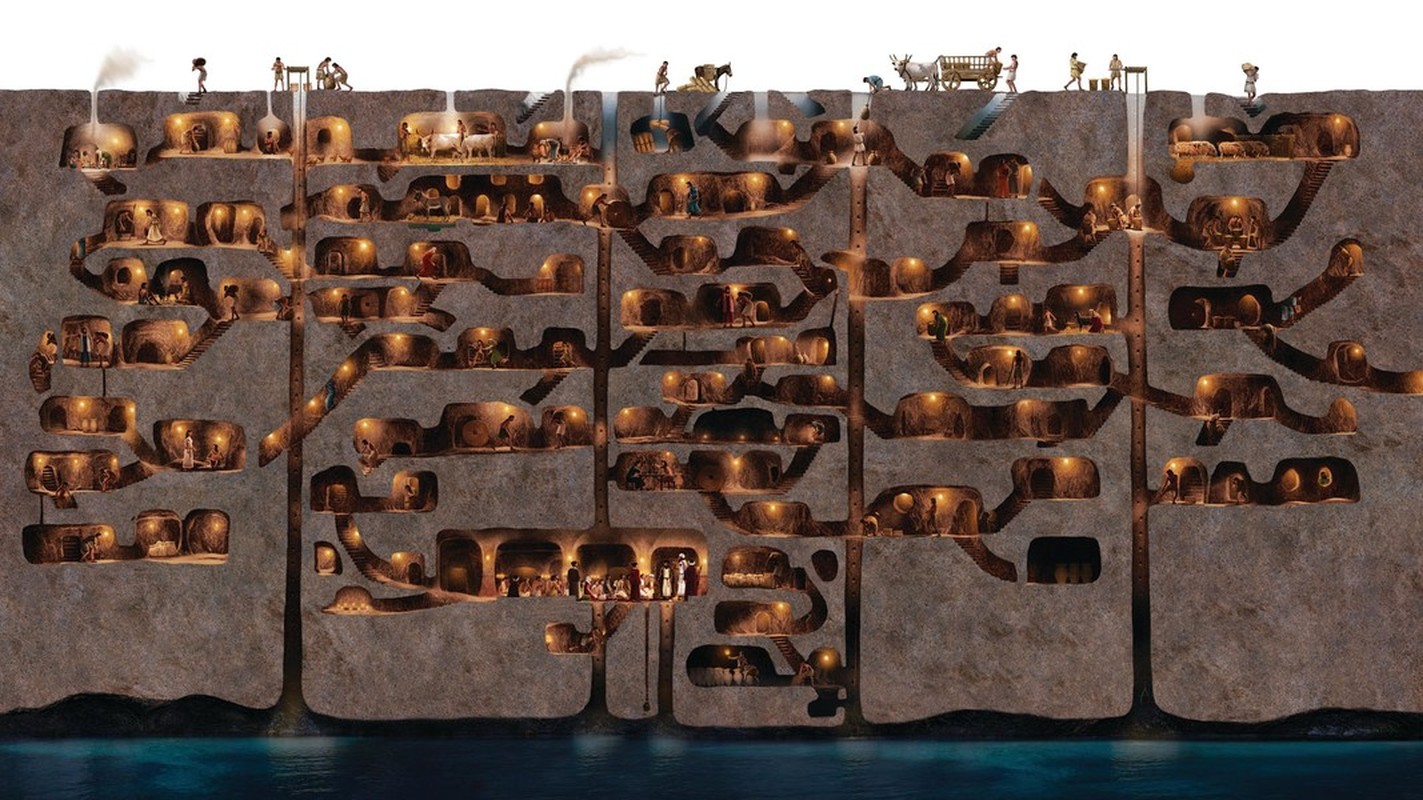 Vùng Cappadocia, Thổ Nhĩ Kỳ nổi tiếng với thung lũng nấm, du lịch bằng khinh khí cầu và đặc biệt là các thành phố ngầm bí ẩn trong lòng đất. Ấn tượng nhất trong số các thành phố ngầm đó là thành phố cổ 18 tầng Derinkuyu.