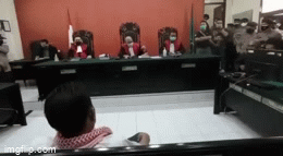 Ngay lập tức, phòng xử án trở nên vô cùng náo loạn. Các nhân viên an ninh nhanh chóng khống chế bị cáo mất kiểm soát này và đưa anh ta ra khỏi phòng xử án tới nhà tù Banyuwangi.