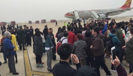 Những hình ảnh được đăng tải trên mạng xã hội Weibo cho thấy, các hành khách tập trung đông trên đường băng sau sự cố. Cảnh sát và lực lượng cứu hỏa cũng có mặt tại hiện trường.