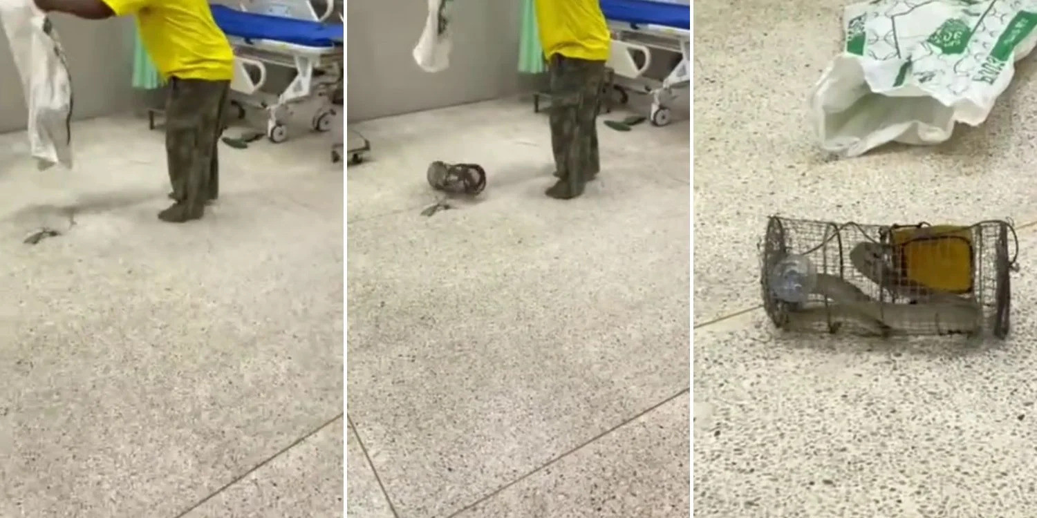 Hình ảnh được ghi lại cho thấy, ngay khi đến phòng cấp cứu, người đàn ông đã ném chiếc lồng đựng con rắn xuống sàn nhà, khiến một số nhân viên y tế giật mình.