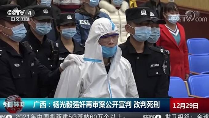 Trong video được CCTV phát sóng, Yang xuất hiện ở phiên tòa khi mặc quần áo bảo hộ và đeo kính để hạn chế lây lan Covid-19. Trước khi chết, Yang được tòa cho gặp các thành viên gia đình, nhưng anh ta từ chối. Yang bị tử hình hôm nay theo lệnh của Tòa án Nhân dân Trung cấp Khâm Châu.
