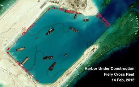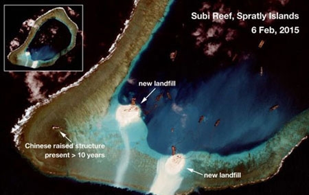 Tháng 3/2015, báo Inquirer, Philippines đăng ảnh TQ cải tạo bãi đá ở Trường Sa của Việt Nam |