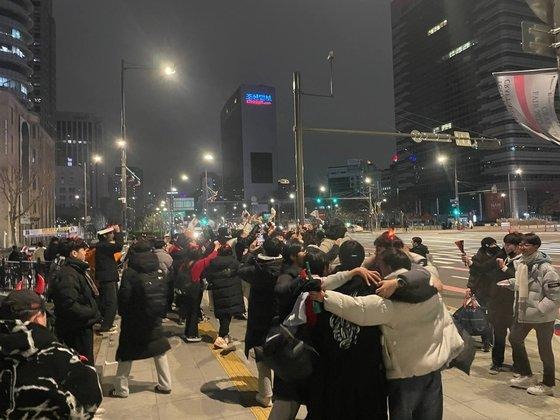 “Ai có thể ngủ được vào lúc này. Không có lựa chọn nào khác ngoài việc ra đường để giải phóng sự phấn khích”, người hâm mộ Hong Ji-su nói. Sinh viên Choi Young-ji thì cho biết: “Không ai cảm thấy lạnh cả. Tôi còn đang nóng chết đi được”.