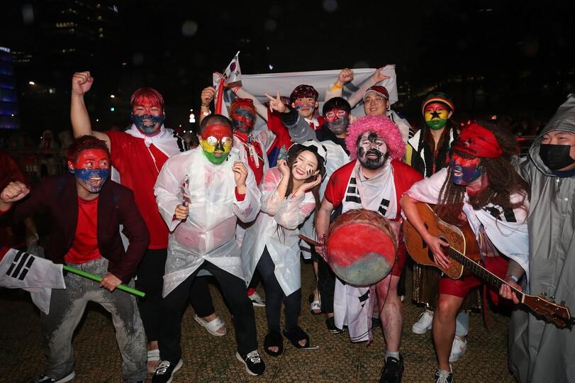 Khi trận đấu kết thúc với chiến thắng thuộc về Hàn Quốc, người hâm mộ lại nín thở dõi theo các diễn biến ở cuộc chạm trán Ghana - Uruguay. Thời điểm thủ môn Ghana bắt gọn cú đá phạt cuối cùng, cả vạn người cùng hét, nhảy múa và bắt đầu mở tiệc ăn mừng. Những người xem TV ở nhà cũng ra ngoài, kéo tới Quảng trường Gwanghwamun dù khi ấy đã hơn 2h sáng cùng tiết trời lạnh giá.