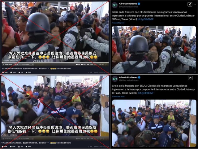 "Một lượng lớn người tị nạn đã sẵn sàng tràn vào biên giới Mỹ hôm nay, trong khi lực lượng an ninh Mexico chỉ ngăn cản họ một cách hình thức", phụ đề bằng tiếng Trung Quốc trong một video trên nền tảng chia sẻ video ngắn Douyin (Tiktok phiên bản Trung Quốc) được đăng tải vào ngày 22/1/2025 viết.