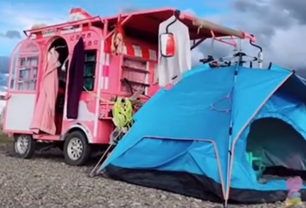 Từ tháng 5, Mỹ Mỹ bắt đầu khởi hành chuyến đi bộ từ quê nhà Hà Nam đến Tây Tạng một mình. Điều làm cho nhiều người thích thú và ngưỡng mộ nhất đó là Mỹ Mỹ đã tự kéo một chiếc RV nhỏ màu hồng xinh xắn chạy bằng năng lượng mặt trời trong chuyến hành trình của mình.