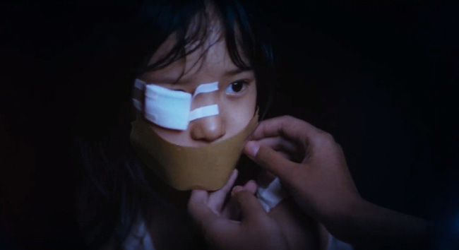 Bên trong, người bố với gương mặt hoảng hốt đang dùng tay siết chặt miệng con mình, mặc cho cô bé khóc lóc trong tuyệt vọng. Cảnh sát nhanh chóng đến hiện trường và giải cứu đứa trẻ, bắt người đàn ông đi.