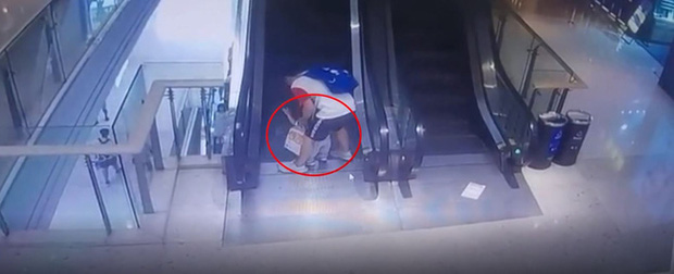 | Hình ảnh bé trai 1 tuổi ngã vào thang cuốn ở trung tâm mua sắm |