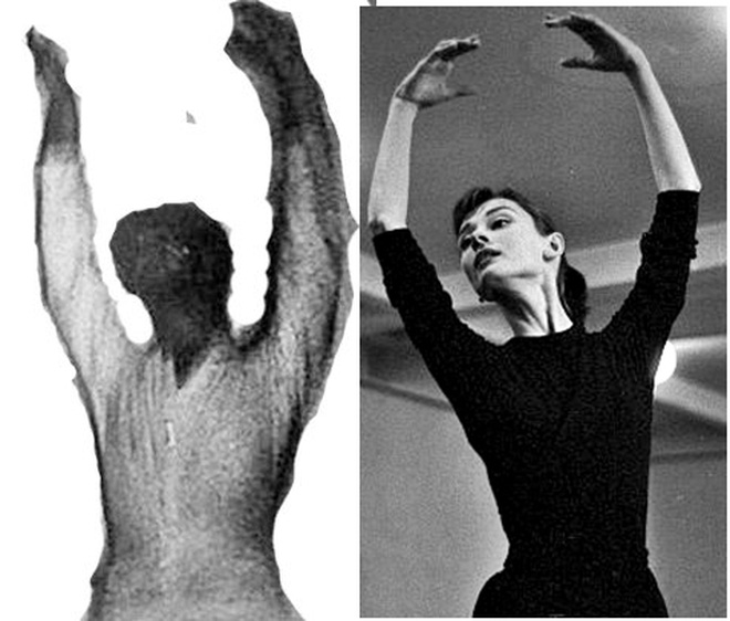Trên tất cả, người này còn tinh ý nhận ra trang phục và sợi dây chuyền trên cổ của bóng dáng kia trông không khác gì bức ảnh được chụp trong lớp học của nữ vũ công ballet Maria Vegh vào những năm 1970. Cách tạo dáng của nó thì hệt như minh tinh Aundrey Hepburn.